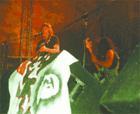 La función de La Renga en Rosario podría llegar a trasladarse al vasto, y aquí poco explotado, ámbito de la solidaridad. Claro que no hubo beneficencia explícita durante esos 150 minutos de fiesta ritual sino, por el contrario, una entrega física y anímica que se tradujo en un recorrido por los hits más atronadores del grupo, esos que fueran incluidos en el exitoso Insoportablemente vivo. El concierto comenzó con “Panic Show”, “Al que he sangrado” y “En el baldío”, marcando la tendencia de un show que podría haber pecado de reiterativo. Pero no. Suena auténtico lo de La Renga. Porque es cierto que la hiperkinética movilidad de Tete ya es tan clásica como arengadora, hecho que no implica una deliberada intención de espectáculo. De ser así, quizás el bajista no hubiera detenido su profesional raid para compartir un enfrentamiento intimista junto a su pequeño hijo quien, guitarrita en mano, se mezclaba en escena para hacer su aporte imaginario.