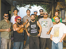 Karamelo Santo ya no vive de okupa en La Boca. Pasaron años, familias, hijos y, en definitiva, la vida. Pero igual todos confluyen en esta sala de ensayo de Banfield, una casona colonial con una galería llena de hojas secas que seguramente cayeron el otoño pasado y nadie aún barrió. Sin embargo, esta naturaleza muerta puede ser una analogía para entender la fugacidad de la existencia y el modo en que aparece otro mundo o, al menos, un nuevo contexto. En la galería, y respetando la hojarasca, se amontonan estos diez músicos cuyos orígenes son, en su mayoría, mendocinos. Bajan las cervezas del freezer y convidan agua fresca, una actitud obligada en estas latitudes del planeta, en esta época del año, donde parece que la Tierra no perdona las malas decisiones ambientalistas.