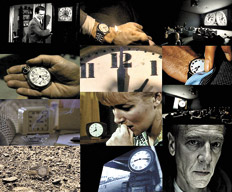 Prefiero conservar el título de la obra en inglés, su idioma original. A diferencia del conocido Tic-Tac pendular, el sonido de la articulación The Clock me lleva a pensar en la rigurosidad de un segundero que se destraba y pasa a la siguiente posición. Es el sonido del instante mecanizado, que se hace visible en las apariciones en pantalla de los relojes, pero que no es otra cosa que el esqueleto cinematográfico: instantes que se suceden, del modo en que una línea es una sucesión de puntos, pero con la particularidad de que sus puntos establecen una asimilación simultánea con el mundo. Sus puntos son los del mundo.