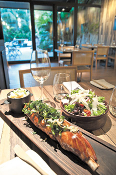 La renovación del restaurante fue total. Incluso el ambiente se ve ahora mucho más relajado e informal, con mesas sin mantel, una linda barra y paredes recubiertas con madera misionera (guayubira). Además del jardín con deck, lugar privilegiado para pasar una tarde con tragos y picada ($ 165) de fiambres, patés y chutneys elaborados por Holloway y equipo, o un sandwich de ojo de bife ($ 130), cocido a punto con vegetales grillados, panceta y chimichurri de ajo confitado.