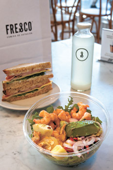 Lo llaman el “dream team”. A cargo del diseño de la carta está Fernando Trocca, el bartender Tato Giovannoni se ocupó de las aguas saborizadas y limonadas (que salen en preciosas botellas de vidrio de regalo) y el diseñador Horacio Gallo puso su mirada en la estética. Así fue el armado de Fresco, en pleno centro histórico de Montserrat, que ya está planeando dos nuevos locales para 2016. Abre de corrido, con desayunos, almuerzos y meriendas (pastelería de Próspero Velazco, café Nespresso), y su nombre busca ser una declaración de principios: “Trabajamos con productos de estación, en su gran mayoría naturales, sin pesticidas y trazabilidad”, explica Sebastián Pertiné, socio que suele estar presente y ayudando en el servicio. Entre sus proveedores, están los mismos que trabajan con la gastronomía cinco estrellas de la ciudad, desde las hojas de Sueño Verde a los quesos distribuidos por La Mesón, de pequeños productores zonales. La comida -sándwiches, bagels, ensaladas- está a la vista, pero no amontonada. Las estanterías tienen sólo lo que se vende en el momento (si algo no está disponible, se puede pedir y lo preparan al instante). El cliente elige, pasa por la caja y finalmente decide entre sentarse en sus mesas (pocas individuales y dos grandes comunitarias) o llevar (“un 60% es para llevar”, aseguran). Pero, a diferencia de tantos lugares céntricos, aquí la apuesta gastronómica es claramente superior a la norma. Sea el simple sándwich de pan de molde negro con mortadela de Tandil ($73) o el best seller de cerdo braseado con cebolla caramelizada y queso ($72). Sea un delicioso fatay de camarones ($84) o una ensalada de langostinos con aderezo casero pasando por el original sándwich de trucha. De beber, limonada bien cítrica y refrescantes aguas saborizadas. Paredes blancas y despojadas, azulejos cortados, vidrio, algunos guiños a la arquitectura tradicional porteña, la gran cocina a la vista: lugar canchero si los hay, Fresco promete y cumple. Gran opción para el mediodía más ajetreado.