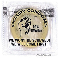 Mientras los indignados de Estados Unidos juntan dinero para “disfrazarse” de ejecutivos, irrumpen en Washington, amplían protestas por Los Angeles, Miami, Boston, San Francisco, Chicago y Dallas (entre otros) y reciben el apoyo del presidente Obama (y el mote de “antiamericanos” de los republicanos), una empresa aprovecha la luz verde del movimiento Ocupemos Wall Street para lanzar un producto que busca honrar y proteger a sus manifestantes. Literalmente. Con la promesa de ser 99% efectivo (un guiño al 99% de la ciudadanía devastada por la economía que los indignados dicen representar), los Occupy Condoms son profilácticos creados por Condomania con un slogan sugerente: “We won’t be screwed! We will come first!” (algo así como “¡No nos van a joder! ¡Acabaremos primeros!”) ¿Su target? “Activistas que necesiten mantenerse seguros en el de-senfreno pasional de las protestas sociales”, avisa en la web.
