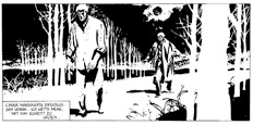 En el simulacro de pantallas pequeñas aparecen problemas con mis tiras, el formato alargado atípico de la contratapa de Página/12. El Eternauta y Mort Cinder lucen preciosos, una fuerza que atraerá las miradas de los levitantes turistas que vienen a ver la puerta de Brandenburgo en pleno revuelo de hojas amarillas y el llanto de un gaitero que no cesa. Se van a encontrar con tremendos claroscuros y expresionismos con globitos. Corto Maltés y Mafalda, más serenos, personajes queribles que abrigan de este frio. A las 16 horas se apaga el cielo, temprano bajo el cielo de Berlín, y eso realzará las imágenes argentinas. Comics y crítica. Políticos.