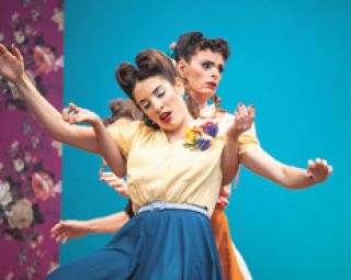 Cuando nos sentamos en las butacas de Teatro Caminito, lo primero que vemos es el impactante espacio concebido por esa enorme artista de los escenarios y los vestuarios que es Gabriela Fernández: paredes turquesa y empapelado florido, mobiliario de los años cuarenta, nos ponen en situación. Los actores entran en caravana por el medio de la platea, con sus trajes coloridos, armados con guitarras criollas y acordeón cantan un tema que habla de la “mufa”.