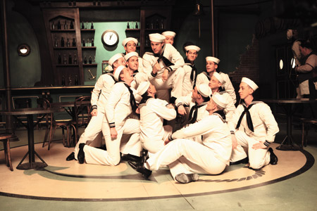 El de la bailarina acuática embarazada no es el único momento musical en ¡Salve, César! Ni siquiera el único homenaje del film a Desfile de candilejas. Otra de las producciones que Capital está encaminando en ese momento, No Dames, está protagonizada por Buró Gurney, personaje creado a la sombra gigante de Gene Kelly e interpretado con una gruesa capa de autoironía por ChanningTatum. Quien, por otro lado, ya había demostrado que podía bailar (véanse las dos entregas de Magic Mike, por caso), pero que aquí se calza por primera vez los zapatos de tap para entregar una relectura del número Shanghai Lil, acompañado por una docena de marineros-bailarines a punto de zarpar y quedarse sin la compañía de las mujeres. Es un ejemplo perfecto de la mirada particularmente sensible y nada cínica de los Coen en esta última película: si la secuencia contiene elementos paródicos y una semilla de broma ligera sobre las convenciones de un género extinto como el musical cinematográfico, su estructura, desarrollo y puesta en escena están jugadas con la más absoluta seriedad y pasión. En una particularmente simpática inversión de imágenes públicas, el personaje de Tatum –un all american boy nato- esconde más de un esqueleto en el placard.