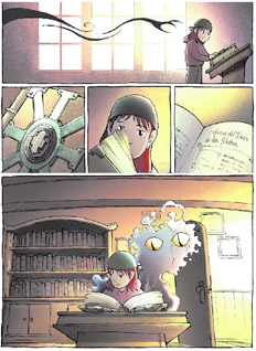 Amuleto, el guardián de la piedra, es el primero de los libro de la saga que a comienzos de este año ha llegado en inglés a los siete números y acaba de ser traducida por la editorial del dibujante Liniers, que tiene entre sus autores nombres como el canadiense Guy Delisle, los franceses Dupuy y Berberian y la colombiana Power Paola, y que con esta publicación se aventura a otro tipo de historietas y de narración. Hacia los niños, claro, pero también hacia contenidos que pertenecen decididamente a la industria más mainstream pero ejecutados con sensibilidad autoral. “Mucho de lo que es Amuleto, tanto la historia como la realización integral del libro, se trata sobre generar un ensamble entre la idea de lo nuevo y retomar el pasado. Los personajes tienen que atravesar muchos recuerdos y también deben intentar comprender tanto a sus antepasados como a sus descendientes. Incluso, fuera de la historia, el mismo estilo de producción del libro es una mezcla entre una técnica de dibujo bastante anticuada con las posibilidades de la última tecnológica de producción”, intenta explicar Kibuishi. Es verdad que Amuleto es una historieta pensada para chicos, sin embargo resulta severamente adictiva para los adultos. Seguramente porque está hecha con oficio y destreza autoral, no solo por el tipo de ilustración de técnica hiper ambiciosa y un tipo de narrativa cuasi matemática muy elocuente –que prácticamente levantar la vista de sus páginas antes de terminar las 200 páginas de cada tomo– aun todo eso podría resultar insuficiente para mantener el interés de uno de esos adultos ausentes que constantemente retrata el autor. El libro realmente obedece a la lógica de su época. Una especie de hijo pródigo de la lógica del remix, de la parodia, el hipervínculo y el scroll constante donde las barreras generacionales se saltan y revisitan constantemente. Básicamente, un mix de todo un mundo de referencias transgeneracionales. De Star Wars, al El señor de los anillos o La historia sin fin, e incluso Matrix, entre los nombres que saltan a primera entre sus lectores. Kabuishi cuenta que realmente lo que a él le gustaba de niño era una tira como Garfield y el humor de la revista Mad, y que además siente que sus historias están influenciadas por escritores como Hemingway y John Steinbeck. Incluso por los conflictos familiares de Francis Ford Coppola y la violencia de Quentin Tarantino. Y así, el remix de referencias resulta realmente desafiante para cualquier tipo de lector y seguro lo será para la operación de la película que ya se encuentra en un primer acercamiento de pre producción en manos de 20th Century Fox. Sobre todo cuando de pronto aparecen animales antropomorfos, casas andantes, árboles vivientes llenos de sabiduría ancestral, elfos, robots en todas sus especies, impactantes batallas aéreas, luchas de drones. Puede parecer descabellado, sin embargo en el libro todo encuentra su lugar justificado, un sentido emotivo y un interés genuino por sus lectores, ahí uno de sus mayores méritos. “Yo siento que mientras más amplias sean las épocas y el tiempo que abarcas como escritor, mejor y más enriquecedora es la experiencia para el lector porque necesariamente estarán haciendo un trabajo reflexivo constante para llenar el espacio que hay en medio de esos tiempos. Por eso creo que algunos de mis temas favoritos son la memoria y el subconciente, ya que mientras más activo pueda ser el lector, más emocionante será el libro.”