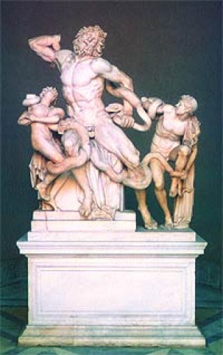 La existencia de la escultura de El Laoconte aparece en la Historia Natural del año 77 del enciclopedista romano Plinio el Viejo, donde éste la describe como: “La obra de arte más grande de todos los tiempos creada a partir de una sola pieza de mármol”, y se la adjudica a tres artistas de Rhodas: Hagesandros, Athenodoros y Polydoros. Según Plinio, la última vez que la escultura había sido vista, estaba en el Palacio de Tito en Roma. Allí la encontraron el 14 de enero de 1506.