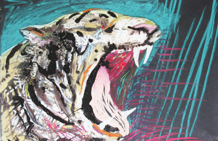 A fuerza de llorarLos animales de la mente de Gómez son indestructibles. Parecen llevar sobre ellos el peso de la Historia, como suele ocurrir en las cosas más simples donde se ve el pulso de un artista. En su “serie negra” Gómez trabaja el pastel para crear imágenes tremendas. Allí, en la potencia de los tigres, la artista captura la esencia del animal a expensas de toda precisión zoológica. El tigre demencial de Gómez, en chispazos de color fulgurante, alerta y tenso, viene de otro mundo. El exotismo, la energía, la gracia y lo sublime han sido centrifugados en una sola imagen. Desde donde quieran que estén, William Blake, Delacroix y Franz Marc deben aplaudir la llegada de este animal que acecha los bosques de la noche encendido en luz.