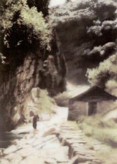 Como muchas de las obras de Richter, “Betty” tiene esa cualidad de la memoria que ha sido momentáneamente rescatada de debajo del agua, ha subido un instante para luego ser chupada por la corriente de nuevo. Lo mismo que Ravine, uno de los pocos paisajes en formato vertical que muestra una imagen tan seductora como opresiva. La figura de lo que parece una mujer camina cerca de un arroyo hacia la garganta de un valle. Uno siente el placer de una buena caminata en una mañana de verano pero también la amenaza.