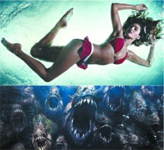 Sin embargo, si hay algo que puede decirse de la flamante remake de Piraña, que está dirigida por el parisino Alexandre Aja, es que es generosa en cuerpos desnudos y calentones, y que su 3D los sabe aprovechar. A ese pretexto para ver carne y sangre que es el argumento, el guión incorpora esta vez a un director de cine porno y dos de sus actrices, y a decenas de chicos y chicas que bailan sin parar, casi en bolas, como si alguien les hubiera avisado que se viene el fin del mundo. Pero además de ofrecer unos cuantos momentos de divertido morbo e imágenes estereoscópicas de tetas desafiando la gravedad en el agua, Piraña 3D efectúa un impensado giro sobre el asunto de las bestias marinas que se devoran a las chicas hermosas. Al principio pone a hervir el agua con sus dos actrices porno convertidas en sirenas (la modelo Kelly Brook y Riley Steele, verdadera intérprete XXX), y muchas otras muchachas no identificadas a las que el guión les reclama que se quiten la ropa o mojen sus tops transparentes sin dejar de moverse. Los personajes masculinos, por su parte y con alguna excepción, resultan ser bastante cretinos, y maltratan a las chicas sin miramientos, en particular cuando empieza el festival de carne desgarrada a dentelladas. Más de uno de estos maltratadores recibirá su merecido, tal como la película nos hace esperar con ansias y sadismo. Hay, incluso, una castración, quizá la primera del cine en 3D. ¿Es por eso Piraña una de terror feminista? Ni por asomo: es una película a la que le gustan sus chicas de cuerpos firmes y desnudos. Pero sí ejecuta esa pequeña venganza de sexo; lo que no es poco, al menos para este pequeño subgénero erótico en el que por lo general las chicas más lindas se ven obligadas a lidiar con algunos de los pescados más podridos.