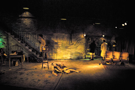 La puesta incluye más de quince actores. Como el friso de un cementerio, donde las urnas de placas idénticas no se diferencian por el tamaño de sus bronces, sino más bien por la frase emotiva con que sus deudos quisieron despedirlos, o las flores más o menos marchitas, estos actores comparten un mismo tiempo, espacio y desarrollo. La obra es coral, en el sentido pleno del término. Hay un inglés enamorado, una ex bailarina contorsionista, una mujer que pregunta por el destino de su marido también finado, un director psicópata, un asistente obsecuente, una supuesta primera actriz que no quiere mezclarse con el vulgo, un mozo (vivo) que vuelve una y otra vez a ver a la mujer (muerta) que lo tiene perdido. Y más, muchas historias más. Estos muertos conforman un mismo cuerpo, o mejor dicho, una misma máquina, que repite sus mecanismos de funcionamiento para nada, sin un fin último. La repetición propia del oficio del actor. La repetición propia de la burocracia como eje del funcionamiento de un Estado. La repetición desnuda, idiota.