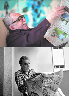 En el año 2010, cuando falleció mi padre tuvimos el honor, junto a mi hermano Ezequiel, de recibir una invitación de la FNPI para viajar a Cartagena por un homenaje que le realizaban al “viejo”. En el marco de varios acontecimientos que sucedieron por esos días, pude volver a ver a Gabo. Por medio de Jaime Abello, entrañable amigo en común, pude conocer más la intimidad de “los García Márquez”. Fue entonces cuando volví a constatar su sencillez y por sobre todo su ternura. Un día antes de mi regreso a Buenos Aires, caminando por las calles de Cartagena vi un tumulto de gente. Era Gabo sentado y esperando en su auto, mientras su mujer hacía unas compras. Le sugerí a Mercedes la posibilidad de hacerle algunas fotos a Gabo sin ninguna expectativa de que esto fuera factible. Ella me respondió: “Vente a almorzar mañana a la casa”. Esa noche, treinta años después, tampoco pude dormir. Al día siguiente, al llegar a su casa, una vez más fue Mercedes –la mujer de toda su vida– quien me facilitó poder estar a solas con él. Como si esto fuera simple, así nomás, me encontré otra vez con él leyendo el diario. Volvió a comentarme lo que leía en voz alta. Algo así como un “déjà vu”, como si el tiempo no hubiera pasado, la magia, la bondad, la grandeza allí, todas en él, intactas. Hicimos las fotos –esta vez no pude evitar pedir tomarme una foto con “el más grande, maestro de maestros”–. Luego disfrutamos el almuerzo.