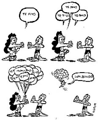 Esta tira empezó poco después de una experiencia amorosa lamentable. La uso como un vehículo de expresión, que empezó como un blog, y después excedió su origen; se volvió una serie con algo de continuidad, y la empecé a sacar en la revista uruguaya Lento, y este año la voy a editar por primera vez como libro. Es más o menos autobiográfica y tiene cosas que me cuentan amigos y conocidos. Es un mundo que me interesa, hay malas palabras pero no hay caca y no hay tanta maldad, es otra cosa.