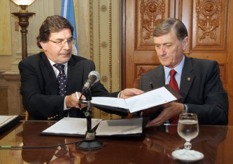 El funcionario nacional llegó a la ciudad para firmar convenios bilaterales con la provincia, en el marco de la Ley de Financiamiento Educativo, como así también para participar de actividades de seguimiento. Estuvo acompañado por el gobernador Hermes Binner y la ministra de Educación santafesina Elida Rasino, en lo que fue la presentación de las metas escolares de la provincia en los años de gestión, que incluyó que este año, Santa Fe sobrecumplió la meta de inversión dispuesta por la Ley de Educación aprobada en 2006.
