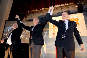 Binner estaba eufórico. Saludó con los puños apretados el largo aplauso que le reservaron sus partidarios. No faltó ningún ministro del gabinete, pero en la primera fila se ubicaron los radicales que apoyan a Bonfatti, entre ellos el intendente de Santo Tomé, Fabián Palo Oliver, su colega de San Justo, Marcelo Mauro y el ex presidente del Concejo Municipal de Santa Fe, Jorge Henn. Un trofeo político.