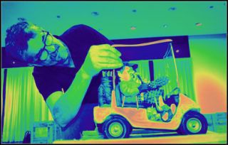 Cada vehículo es un mini hábitat de sus conductores y pasajeros, quienes transportan animales, herramientas o sándwiches microscópicos. Tanto aquí como en su serie de las profesiones, Forchino es capaz de concentrar en una superficie de pocos centímetros cuadrados todo lo que constituye la vida de un personaje. En La mudanza (2010) vemos todo eso literalmente, amarrado al camión. Desde el despliegue de parafernalia analógica del El fotógrafo (2015) hasta El jardinero que contempla con orgullo su tomate, siempre hay algo de nostalgia por épocas tecnológicas pasadas en estas obras. Lo más entrañable es cómo Forchino parece crear a los conductores y pasajeros de sus vehículos a partir del modelo, la marca y el color: una pareja de artistas (él, italiano; ella, francesa) van con su perro y sus cuadros en el Citröen escarabajo azul; un playboy, en el Mustang 65. Cada personaje encarna un estereotipo, y al mismo tiempo su carácter es bien singular: el texto al pie les pone nombre, y sus rasgos y expresiones son únicos.