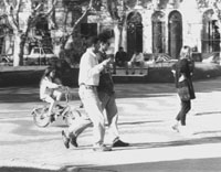 En las medias mañanas de los domingos, el tiempo adolescente se recobra en la plaza San Martín. Se desvancen las escenografías de sórdidos espectáculos montados en la Jefatura y el Comando. Los faroles vuelven a tener lámparitas de filamento, el monumento a San Martín se despoja de los apáticos andamios restauradores, los bancos de madera pueden moverse. Bajo las hojas secas de los plátanos se borra la deshonesta imitación de las veredas de Ipanema, vuelven las clásicas baldositas cuadradas de cemento gris.