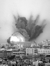 Yo la escucho y pienso en qué clase de defensa es esta que apunta a destruír la completa infraestructura de una nación a la que no se le ha declarado la guerra, que siembra la ruina, la desolación y la barbarie en un pueblo digno, estimable y que en tanto semejante a otros merece y debe ser respetado, ayudado y cultivado por todas las naciones libres del mundo, qué clase de defensa es esta que se ensaya ejerciendo una violencia indiscriminada sobre personas desarmadas y pobres, sobre ésos que quedan en las locaciones listos para ser filmados como cadáveres para la televisión global, contra los que no tienen nigún recurso para defenderse o escapar, qué clase de defensa es esa que se funda sobre los intereses de los poderosos amos del planeta para abogar por su causa sin que sus acciones militares resulten efectivas para una verdadera defensa.. Y seguramente se lo diría, le preguntaría sobre estas y otras cosas sin animosidad alguna y aún mirándole las pecas esas que casi en todo el cuerpo le dan esa textura suave, rugosa y excitante, pero entonces me llaman para que haga una pasada de la escena que vamos a filmar y entonces livianamente me besa la mejilla y entonces salgo del trailer y cuando salgo miro las luces, y además hace frío.