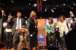 El Frente Progresista Cívico y Social cerró su campaña con una convocatoria que llenó el Patio de la Madera y demostró el optimismo que impregna a la coalición de cara a la elección del domingo, al punto de que sus dirigentes manejan, aún cautos, la expectativa de ganar 5 de las 13 concejalías rosarinas en disputa, y 5 de las 9 bancas a diputado nacional en juego. Anoche, ante la diversidad de banderas de los partidos que integran la fuerza, los nueve oradores proclamaron "el primer paso de un mensaje que nace desde Santa Fe y la trasciende: otro país es posible, otra forma de hacer política".