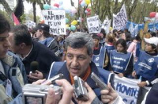 La marcha que comenzó en Rosario pasadas las 15.30, estuvo protagonizada por un numeroso grupo de niños que viene marchando desde Misiones con destino a Capital Federal para manifestarse en contra del hambre. Cientos de chicos de todo el país se congregaron en la plaza San Martín con la adhesión de varios grupos sociales, y marcharon luego hacia el Monumento a la Bandera, lugar del acto central. "Ni un pibe menos. El hambre es un crimen", es el lema de la manifestación, que arribó pasadas las 16.30 al Monumento a la Bandera. Allí fueron los chicos los protagonistas y oradores, aunque el interés de los medios de prensa estuvo invariablemente en la palabra del propio De Gennaro, quien se quejó porque el lunes durante el paso de la marcha por la capital santafesina "la Casa de Gobierno en Santa Fe estuvo cerrada y el gobernador no estaba, cuando los pibes en la plaza decían sus verdades. Y la verdad es que no hubo ningún gobernador de ninguna provincia en estas cuatro marchas que realizamos, de los partidos supuestamente populares y no hubo ningún presidente que haya recibido a los pibes para escucharlos: no pueden mirarlos a los ojos o escuchar las verdades que dicen o las preguntas que hacen y que evidentemente no pueden responder. Y ellos lo saben porque optan, optan por defender los intereses de las trasnacionales, la los grandes grupos económicos", se quejó el líder sindical.