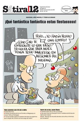 Llega Nochebuena, y lo mejor de todo es que al día siguiente llega Navidad. Y una semana después, Año Nuevo. ¿Le parece poco motivo para brindar, para festejar? ¡A ver, qué necesita usted para estar contento...! ¿Qué necesita, eh? ¿Necesita que eliminen la tablita de Machinea, necesita que los jubilados cobren 200 pesos más por única vez, necesita que el pan dulce salga 9 pesos? ¡Lector, no se haga el complicado que la vida es una sola!