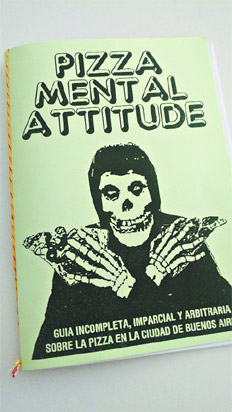 Corren tiempos aciagos para la gastronomía porteña: totémicamente, ella configura recorridos comerciales, oficiales o independientes y con su trazado alcanza y sobra; como si su capacidad de preveer flâneries calóricas incluyera todo la itinerancia posible. ¿Y a dónde vamos, entonces, que no sean grandes comederos de guía internacional o extravagancias incomprobables de un “boca en boca” dudoso? Si de pizzeada se trata, el fanzine Pizza mental attitude –creado por el artista visual y músico Joaquín Balmaceda, cantante de la ya venerada banda punk Los caídos– postula gratuidad y recorte personal, como si el masacote porteño ideal se compusiera de porciones de varios locales. “Guía incompleta, imparcial y arbitraria sobre la pizza en la ciudad de Buenos Aires”, aclara la publicación que ofrece opciones para paladares vegetarianos, carnívoros y veganos; dónde comer después de un “reci” (sic), de madrugada, cuando no hay plata “o cuando querés hacerte el bacán”. Cadáveres en skate, cráneos con crestas, penes enfundados en camperas de cuero y un antihéroe con una de muzza chorréandole en la parada del bondi acompañan las reseñas críticas del autor: “La pizzería es un lugarcito chiquito, perdido en Once (…) no cuenta con fama ni con renombre, pero para mí es una de las 2 mejores pizzas de la ciudad”, asegura Balmaceda de Pichín. En cambio, de Ugi´s señala que “Como bonus (léase, como bonus a tanta explotación laboral y tan baja calidad de los ingredientes) Ugi´s tiene un perfil de Facebook falso donde bardean constantemente”. Pizza mental attitude es así un baluarte para cualquier arbolito queer: el diseño de caminos propios, giras singulares, pesquisas y afinidades es un básico de la construcción de identidad. La guía invita a experimentar con diversidad la diversidad e impactar en cada levante con un antro desconocido. Claro que en el caso Kentucky se encarga de aclarar que “el lugar no es para marcar un encuentro con alguien”, menos si sos torta. Hecha esa salvedad, para el resto, acá lo que importa –como en el juego de las asignaciones sexuales– es la actitud. l