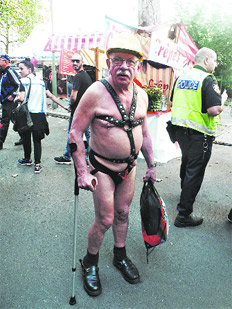 Muchos siguen preguntando cómo puede ser que estos homosexuales pervertidos -con mucho menos respeto, hay quien dice “estos payasos”- sigan reproduciendo, ¡y encima en estas malditas tierras alemanas!, la estética del poder opresor y para peor, sus métodos de tortura. ¿No tienen suficiente con todo lo que han sido despreciados en este último siglo? ¿Todavía quieren más? Yo les respondo siempre que por qué no dejan de regalarles tanto crédito a los fabricantes de aparatos para el dolor y a los verdugos, ejecutores de los métodos de tortura. Los tormentos vinieron después de la conciencia de los cuerpos. Han sido creados basándose en nuestros miedos y deseos, en nuestros puntos débiles, en nuestras zonas de mayor sensibilidad, en nuestros puntos fuertes. El miedo al dolor, la sensación de haberlo superado, la solidaridad de cuerpos que no son necesariamente dos, nos convocó como comunidad obsesionada con un goce. Y lo sigue haciendo. Ellos son una aberración, nosotros, una desviación. Para mí, acostumbrado a las catacumbas, es inaudito y excitante estar paseando con mi equipo por las principales calles de Berlín. No estoy dispuesto a darle a los asesinos el copyright del cuero, de los látigos que tantos amigos me han proporcionado, de la reciedumbre de loca que me he colocado en éxtasis como otras personas se colocarán con un dildo, una caricia, una pastilla, una prótesis, una palabra mágica. La subcultura leather -y ya me revuelco de alegría cuando digo subcultura, en un contexto en que todo parece misericordiosamente integrado- reproduce estilos, vestimentas, poses, roles que se organizan en relación a actividades sexuales. Somos una comunidad sexual, sin identidades tan reconocibles como homosexual o heterosexual, transexuales o no transexuales. Creo que nuestro aporte a una lucha por las liberaciones que hoy está en un interesante atolladero, es la nada, la superficialidad, lo epidérmico de nuestros cueros. ¿Qué piden ustedes? Preguntan los curiosos y los bien intencionados. Un crédito para comprarme una fusta, porque me he gastado todo mi seguro en la máscara que es la estrella de esta temporada, y confieso, jamás quise usar ninguna. Los cronistas no terminan de comprender lo que ocurre, nos llaman tóxicos, la nueva palabra que viene a remplazar a otras pero que curiosamente continúa en torno de lo sanitario. “No se entiende tanto delirio y tamaño orgullo local por lo extravagante, la heterodoxia o el hágase mi voluntad” es la crítica más iluminada que escuché jamás. Nací en 1943, y no hace falta que me cuenten de la guerra aunque no la recuerdo más que en el modo en que se deshizo la familia, la casa, los hábitos alimenticios, los miedos. Y tampoco hace falta que me cuenten de los primeros bares leather que surgieron en esa misma década porque estuve allí. Tengo el sonido de las motocicletas en mi memoria. A esta altura entonces, muchos me siguen advirtiendo que ésta no es otra cosa que la captación capitalista de nuestros deseos. Todo cuesta plata, todo es caro, todo está fabricado en China. Y sin dudas es así, respondo yo. No voy a decir lo que dicen los organizadores, que la mayor parte del dinero se destina a solventar estas alternativas maneras de vivir la sexualidad. Voy a decir: gracias por recordármelo, quiere decir que estamos entonces en este mundo, igual que todos. A ver cómo lo cambiamos. De pronto, mi cuerpo desvencijado, mis pocos pelos en la cabeza y la necesidad de movilizarme con un bastón y un amigo que cada tanto viene a preguntarme si necesito sentarme, me ha vuelto un objeto revulsivo. La disidencia se me ha instalado en las carnes caídas, y de pronto me he vuelto bandera. ¡Los viejos aquí se pasean como dueños de la calle! Nos sacan fotos. Nos piden citas. La revolución, lleva su tiempo; lleva parte de mi tiempo, me digo yo. Hay que estar muy atentos.