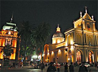 Un paseo nocturno por el casco histórico tucumano, iluminado y animado en torno de la Plaza Independencia, en cuyo centro llama la atención la Estatua de la Libertad, que la escultora tucumana Lola Mora realizó en 1904.