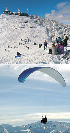 GANAR EL CIELO Las vistas más espectaculares que se obtienen del paisaje invernal de Bariloche son volando en parapente. Las plataformas de lanzamiento que más se usan están en los cerros Otto y Catedral, que ofrecen panoramas muy similares.