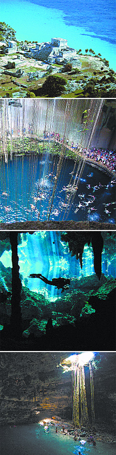 La naturaleza privilegiada del mar Caribe no es exclusiva de las islas de la región. También se extiende por las costas continentales, entre las que sobresalen las de la península mexicana de Yucatán . Es la zona del Caribe Maya, donde la extraordinaria civilización prehispánica dejó el testimonio de su pasado a lo largo de un corredor arqueológico en el que se yerguen las ruinas de Chichén Itzá, de Tulum y de Cobá, y donde están los antiguos cenotes, esas bocas que se abren en la tierra sobre ríos subterráneos que los mayas consideraban sagrados.