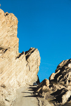 FLECHAZOS AL CIELO A la mañana siguiente continuamos nuestro periplo salteño por la 40 –siempre hacia el sur– y atravesamos uno de los paisajes más desolados y exóticos del país: la quebrada de las Flechas. En el kilómetro 4380 de la Ruta 40 comienza esta quebrada cuyas placas sedimentarias a ras del suelo se quebraron por el surgimiento de las montañas y quedaron con los extremos apuntando al cielo. Luego el viento las afiló y ahora parecen cuchillas o puntas de flecha, una al lado de la otra. Desde la distancia el paisaje parece una torta mil hojas totalmente fragmentada. En esta zona el terreno y los cerros no son rojos sino ocres, como las casitas de adobe semiderruidas aquí y allá, habitadas desde hace más de un siglo.