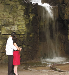 La cascada de Buttes Chaumont, escenario del amor de Colin y Chloé en la película.EN EL ESTE DE PARIS Hasta encontrar a Chloé, Colin vive una vida improbable pero soñada, que se convertirá en pesadilla cuando ella se enferme de un nenúfar en el pulmón derecho. Su casa se estremecerá cada vez más. El surrealismo de la novela tiene su correlato en los efectos especiales de la película: pero los decorados se pueden ver, apreciar y recorrer, como los paseos de la pareja con su amigo en el Parque de las Buttes Chaumont. Es un parque romántico creado a mediados del siglo XIX, bajo el Segundo Imperio (de Napoleón III) donde antes había una enorme cantera. Los paisajistas supieron aprovechar los relieves para crear barrancos, cascadas de agua, un lago artificial, desniveles y senderos que llevan a una cueva que parece totalmente natural pero cuyas estalagmitas son totalmente... artificiales.
