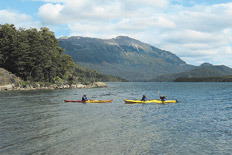 La corriente del río nos lleva casi sin esfuerzo y con rapidez hacia el lago Futalaufquen, de origen glaciario. Otra vez nos toca lidiar –ya con cierta pericia– con choque de corrientes y remolinos, que nos obligan a girar en el lugar y remar hacia adelante. Desde aquí la selva valdiviana, con sus bosques siempre verdes de múltiples estratos, se ve en su esplendor. Tras algunos kilómetros, hacemos una parada en una playita desierta para almorzar y apreciar el silencio. Luego emprendemos el último tramo hasta la playa El Francés, sobre el lago.
