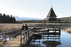Por la tarde nos sumamos a una visita clásica al Alerzal Milenario. De hecho, el Parque Nacional fue creado en 1937 para proteger uno de los cuatro bosques de alerces que existen en el mundo. Desde Puerto Chucao se navega por el lago Menéndez hacia Puerto Sagrario. La travesía lleva al corazón del santuario natural, que alterna cursos de agua, bosques vírgenes, cordones montañosos y hasta un glaciar colgante, como el Torrecillas. Desde Puerto Sagrario, una caminata de dos horas –con renovadas pasarelas metálicas– conduce a través de la selva valdiviana. Al llegar al lago El Cisne y su imponente cascada se descubre el alerzal y so-bre todo el imponente "Abuelo", de más de 2.600 años, tres metros de diámetro y 52 metros de altura.