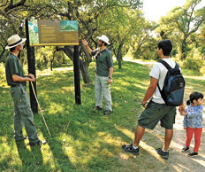 Del otro lado del puente colgante nos espera Juan Carlos Sosa, uno de los responsables de las visitas a la Reserva Ecológica, creada en 1998 por la Universidad Nacional del Litoral y la Fundación Hábitat & Desarrollo. “Es una área protegida urbana, hermanada a la Setúbal con 12 hectáreas, reparo para muchas especies, sobre todo aves, que encuentran hogar en estos paisajes del valle aluvial del Paraná”, dice. Allí hay mamíferos, reptiles e invertebrados, aves acuáticas y peces, junto a un espacio para proyectos de investigación y docencia. El paseo, gratuito y abierto al público, se inicia por el Sendero de los Cuises, que lleva su nombre por los simpáticos roedores que aparecen regularmente. Pájaros y en ocasión algún otro animal son parte del atractivo inmediato de la caminata, que se expande por varios senderos y ofrece un fresco valiosísimo para combatir los calores. Al final del trayecto central está el Centro de Interpretación, y un poco más allá una laguna donde Sosa asegura que, si se es paciente y algo afortunado, puede verse una familia de yacarés.
