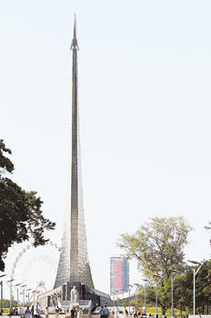 Al pie de la colorida y famosa Catedral de San Basilio, en la Plaza Roja, hay una escultura de bronce de 1818 –la más antigua en las calles de Moscú– en honor a Dimitri Pozharski y Kuzma Minin. Estos príncipes rusos reclutaron un ejército de voluntarios en toda Rusia y lograron expulsar de Moscú en 1612 a los invasores polaco-lituanos. Enmarcada por las cúpulas multicolores con forma de cebolla de la catedral, la escultura de estos dos hombres alcanza un dramatismo sublime, especialmente por la noche. La obra fue encargada al artista Ivan Martos por la Sociedad Libre de Amantes de la Literatura, la Ciencia y las Artes para el 200º aniversario de la batalla del 4 de noviembre de 1612. Una vez terminada, fue traída desde San Petersburgo arrastrada por caballos sobre cursos de agua congelados. El zar Alejandro I la hizo colocar en el centro de la Plaza Roja, pero en 1936 los bolcheviques la apartaron a su lugar actual porque obstruía los desfiles militares. Hoy es uno de los símbolos más representativos de Moscú.