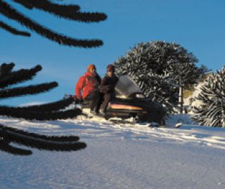 Villa Pehuenia tiene la clásica gastronomía de montaña, calórica y con ingredientes que hoy son típicos de la Patagonia, como la trucha, los hongos de pino, la frambuesa, el cordero y el piñón de la araucaria. En general los dueños de los restaurantes cocinan o sirven los platos en las pocas mesas de sus locales. Uno de ellos es Nous, en el “centro” del pueblo, donde Norma Albornoz tiene cinco mesas y se especializa en picadas, repostería y productos a base del piñón. Norma cuenta que cada año les compra a los piñoneros mapuches 500 kilos de ese fruto y los freeza, porque el piñón madura cada 20 meses. Para cocinar sus puntiagudas semillas –como dientes de ajo alargados– hay que hervirlas. En Nous el piñón se usa para una pasta untable parecida al paté, que es parte de una suculenta bandeja con fiambre de ciervo, jabalí, trucha y panceta ahumados, además de quesos, zanahoria en escabeche y tomates secos. Para los postres hay alfajores y semillas de piñón almibaradas.