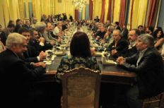 La presidenta, Cristina Fernández de Kirchner, recibió hoy a los representantes de la CGT y CTA y de todos los sindicatos que nuclean a los trabajadores de los medios de comunicación, para debatir el proyecto de una nueva ley de radiodifusión.