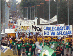 La Asamblea Ciudadana de Gualeguaychú rechazó la propuesta de levantar o flexibilizar el corte de la ruta 136, que conduce al puente General San Martín, tendido entre Fray Bentos y Puerto Unzué, en protesta por la instalación de la pastera Botnia.