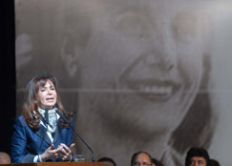 En su discurso, la presidenta dijo sobre 'Evita':“Me la imaginaba pidiendo memoria verdad y justicia junto a las Abuelas. Me la imaginaba diciéndonos que nuestro lugar era en América Latina junto a los países hermanos”.