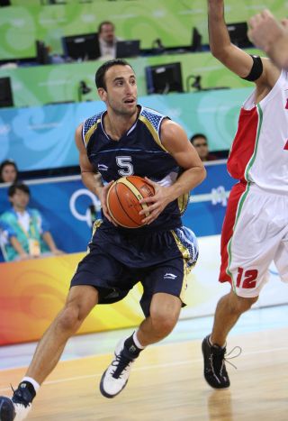 Con un estupendo tercer cuarto de Emanuel Ginóbili, quien terminó siendo goleador y figura del encuentro, el seleccionado argentino derrotó hoy a Irán por 97-82, y se aseguró la segunda posición del Grupo A en los Juegos Olímpicos de Beijing.