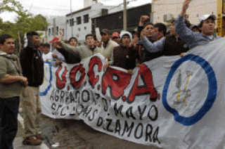 Voceros policiales indicaron que en el lugar se originó una pelea entre este grupo disidente y otro oficialista que terminó cuando presuntamente desde dentro de la sede de la UOCRA atacaron a los manifestantes con disparos de escopeta.