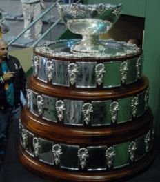 La Ensaladera de Plata, el emblemático trofeo que recibe el campeón de la Copa Davis, se luce desde esta mañana cerca de la cancha donde a partir del próximo viernes se jugará la final entre Argentina y España.