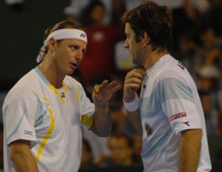 La dupla argentina David Nalbandian y Agustín Calleri disputo un durísimo partido ante Feliciano López y Fernando Verdasco que perdió por 7-5, 5-7 y 6-7 y 3-6 por la final de la Copa Davis en Mar del Plata. La serie ahora favorece al equipo visitante por 2 a 1 luego de las victoria de ayer de Nalbandian y de López y del dobles de hoy.