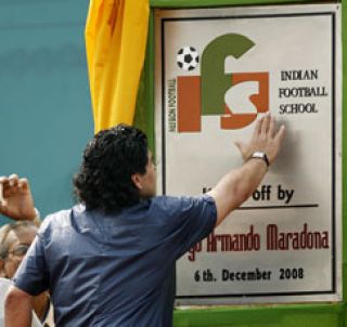 El ex futbolista Diego Armando Maradona recibió la bienvenida de 30.000 personas que se reunieron en las calles de Calcuta, en una inolvidable muestra de cariño para con el actual entrenador del seleccionado argentino. Puso hoy la piedra fundacional de la IFS, Indian Football School y luego visitará el convento de la fallecida Madre Teresa.