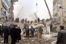 La explosión se produjo anoche y redujo a ruinas dos de los portales de un edificio de apartamentos de cinco plantas situado en el número 67 de la calle Nekrásov.