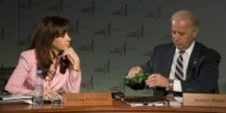 La presidenta participó en una mesa redonda que compartió con Bachelet, Lula, Rodríguez Zapatero, Biden, Brown, Vázquez, y el noruego Stoltenberg.