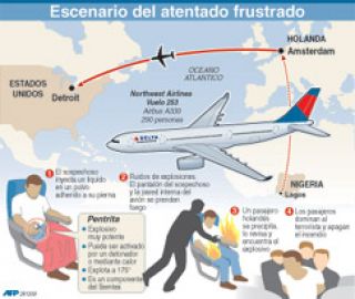 Umar Faruk Abdulmutallab, de 23 años, quien había reivindicado lazos con Al-Qaida, afirmó que fue entrenado en Yemen por ese movimiento, según funcionarios estadounidenses. El agresor intentó activar un dispositivo con explosivos, antes de ser controlado por varios pasajeros.