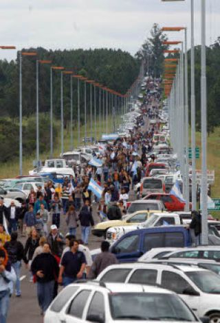 Fernández comunicó la decisión tomada por el Ejecutivo nacional en la reunión que compartió esta mañana con la Presidenta Cristina Fernández y Alak. Así, el ejecutivo desistió de cumplir con la disposición presente en la resolución de Justicia de Concepción del Uruguay, de garantizar el libre tránsito en el acceso al puente General San Martín, que une Gualeguaychú con la localidad uruguaya de Fray Bentos.