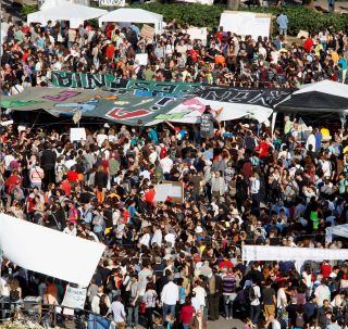 Allí, unas 24 mil personas se concentraron anoche. Juan López, uno de los portavoces de la acampada, dijo a Efe que los concentrados en esta mini-ciudad se enmarcan en un movimiento ciudadano, apartidista, heterogéneo, con todo tipo de ideologías políticas y edades que no se rige por "leyes" sino por normas de convivencia votadas y consensuadas en la asamblea.